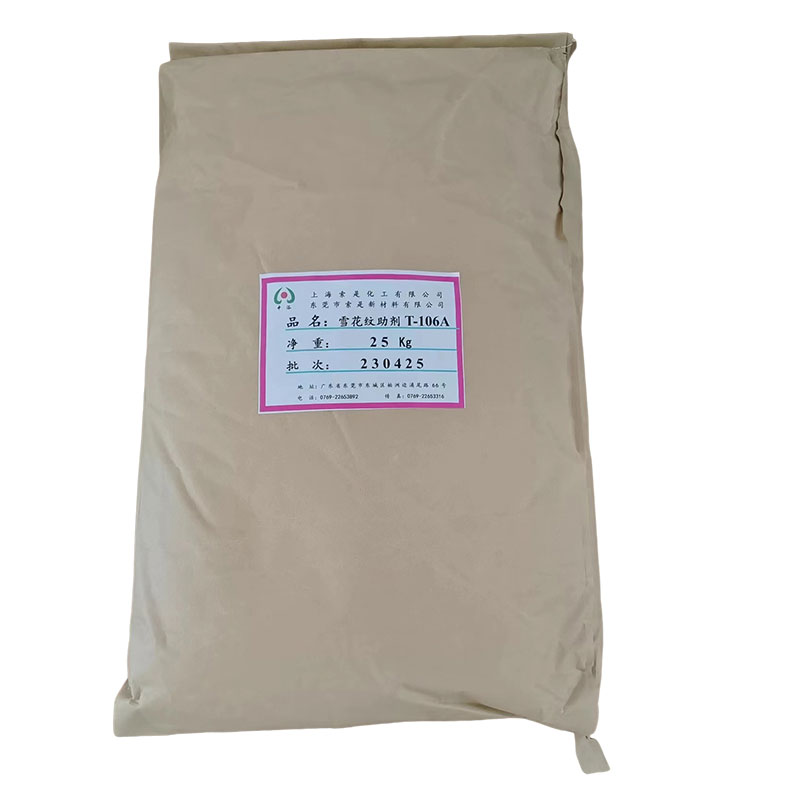 一、概述:雪花紋助劑 T-106A 是一種新型的紋理效果體系,可通過一次性擠出形成一種清晰的雪花狀或冰花狀紋理表面,且具有極好的裝飾性。