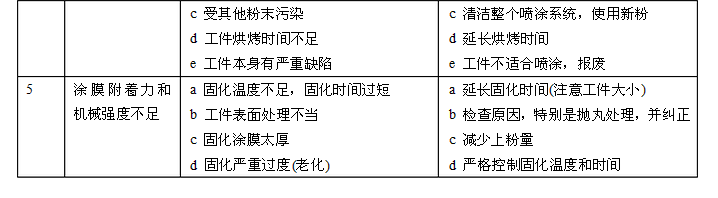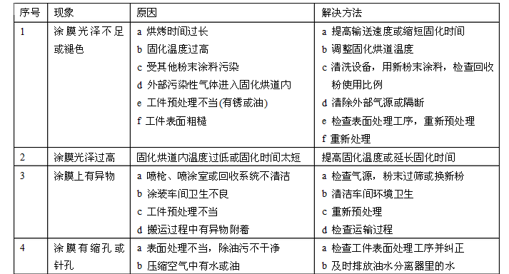 表5 閥門粉末噴涂工藝中常見的涂膜弊病及解決方案
